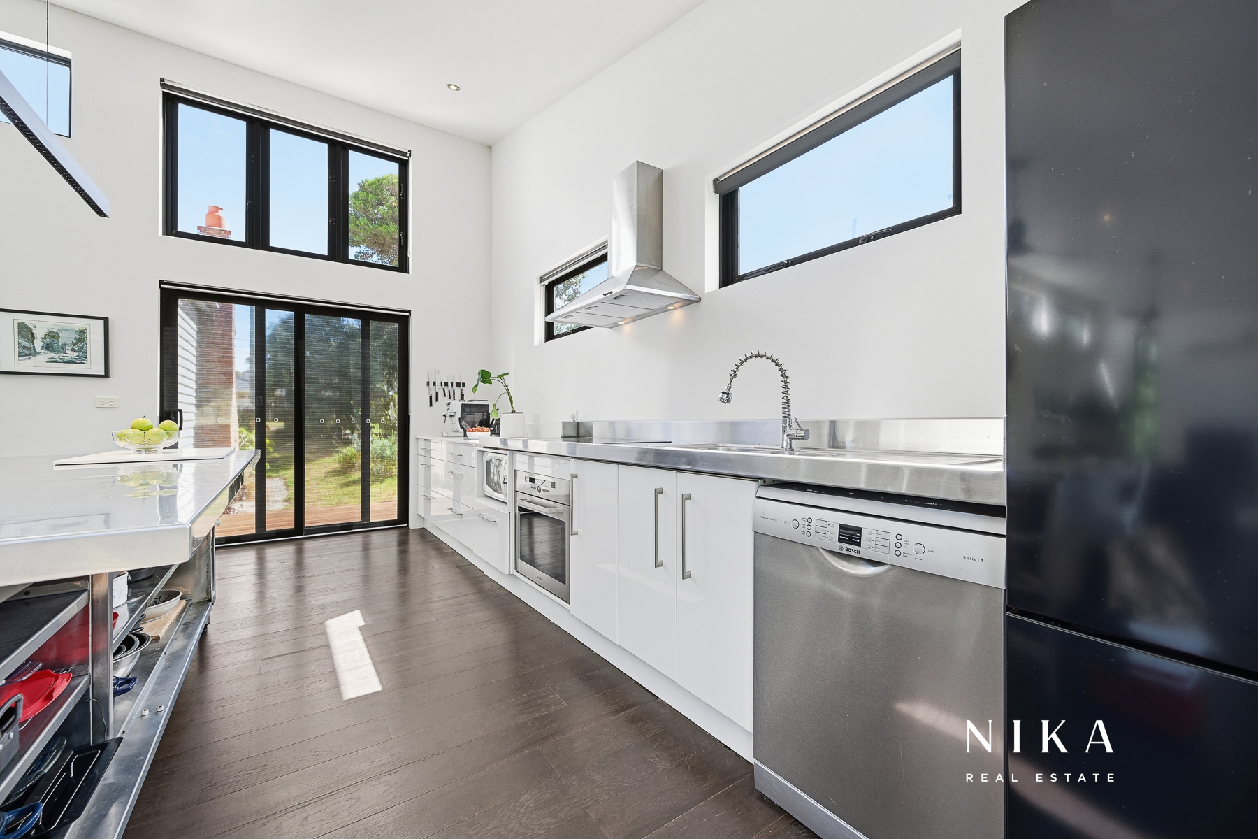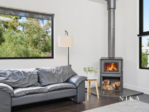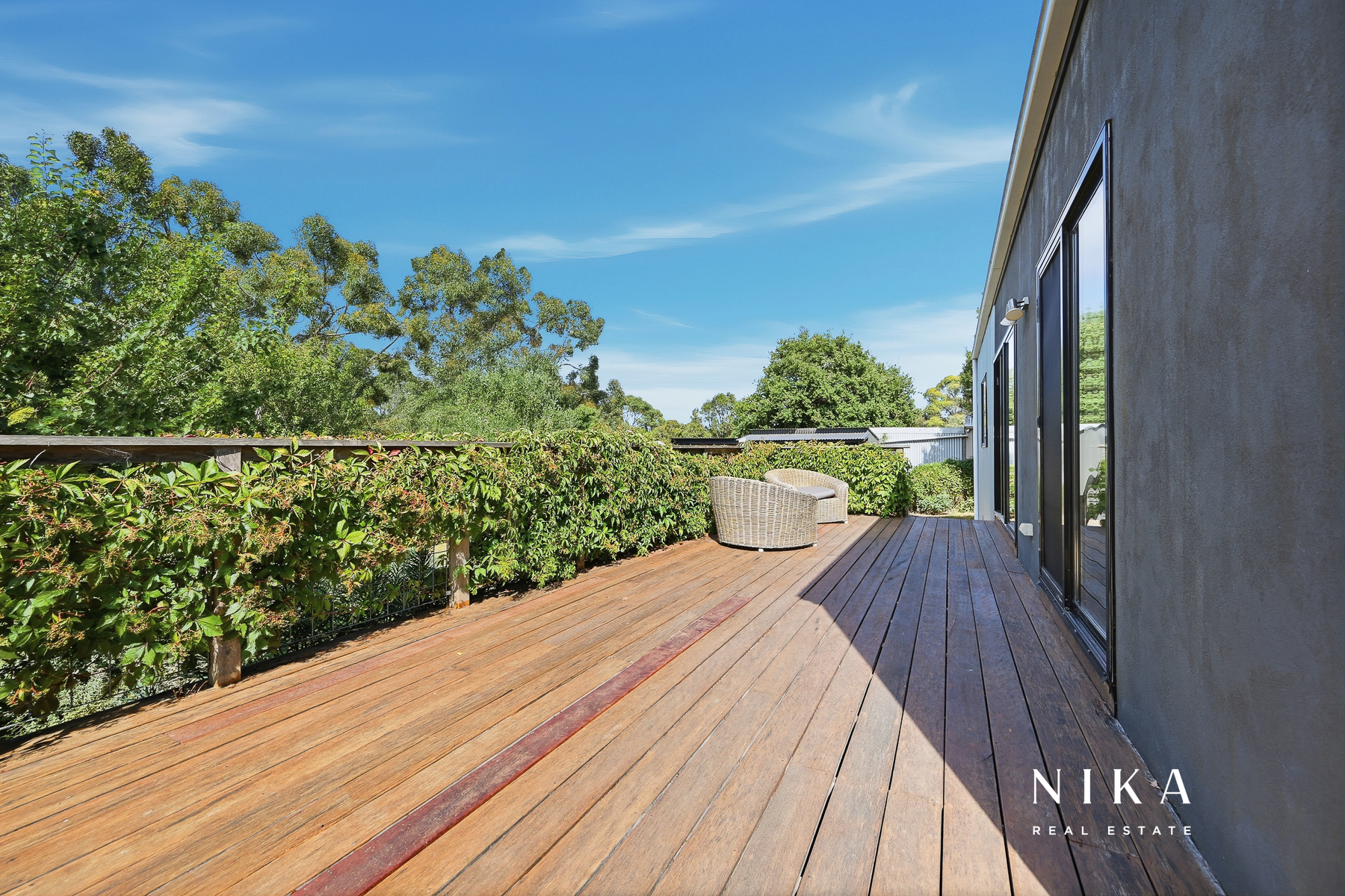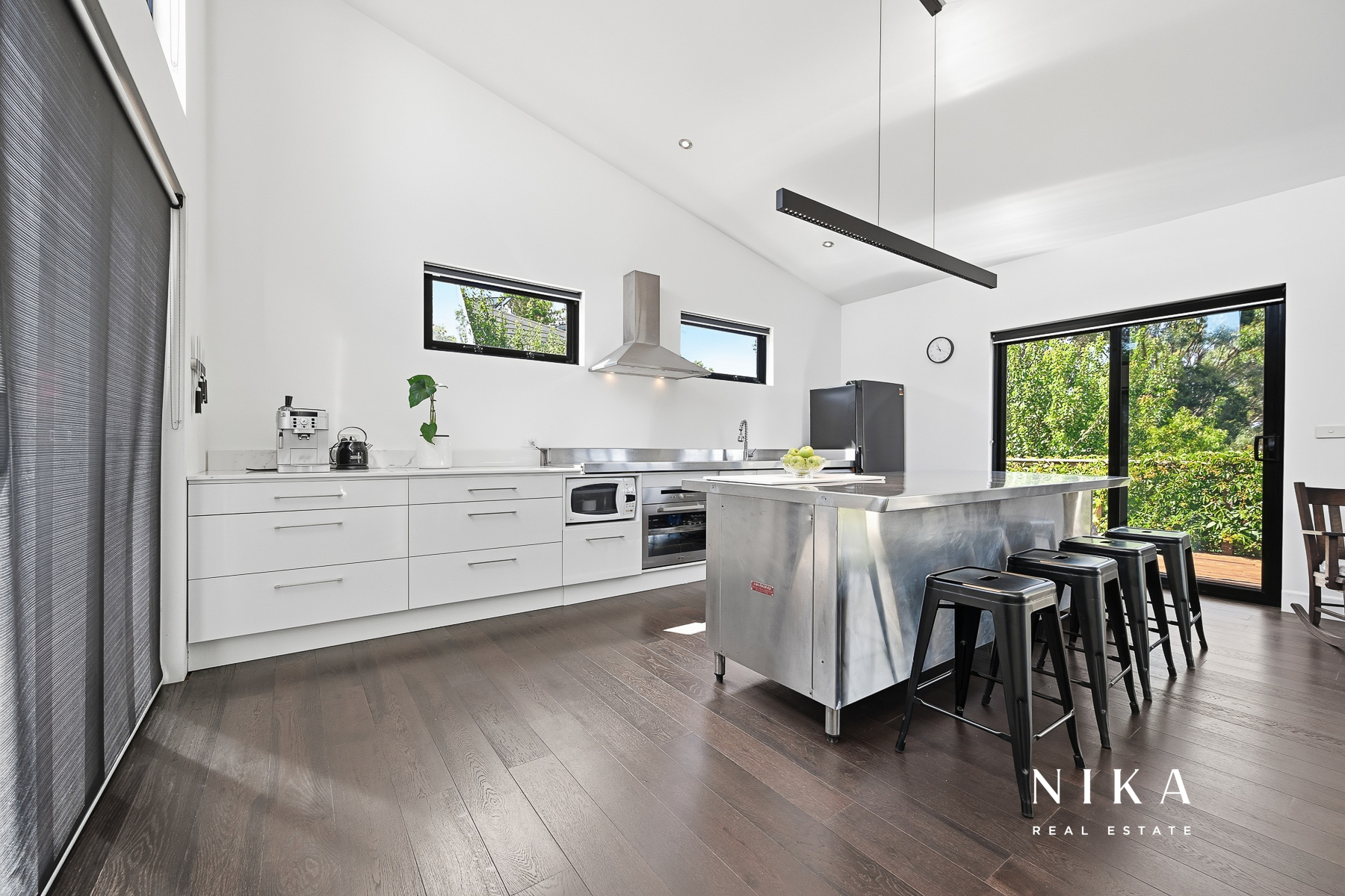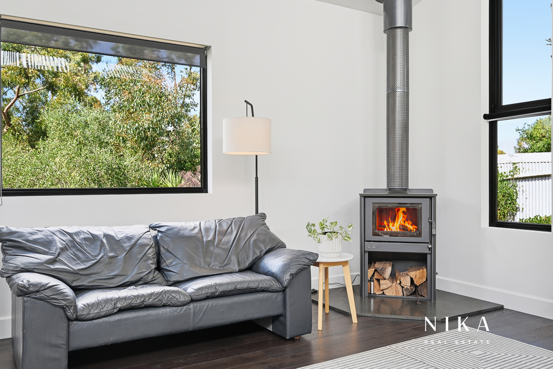 This modern space is perfect for entertaining or relaxing, featuring solid fuel heating to ensure comfort throughout the year. The seamless transition to the rear deck invites you to experience the beauty of outdoor living. Here, you can enjoy serene views of the garden, which boasts an array of fruit trees and well-maintained garden beds, creating a peaceful retreat right at your doorstep.